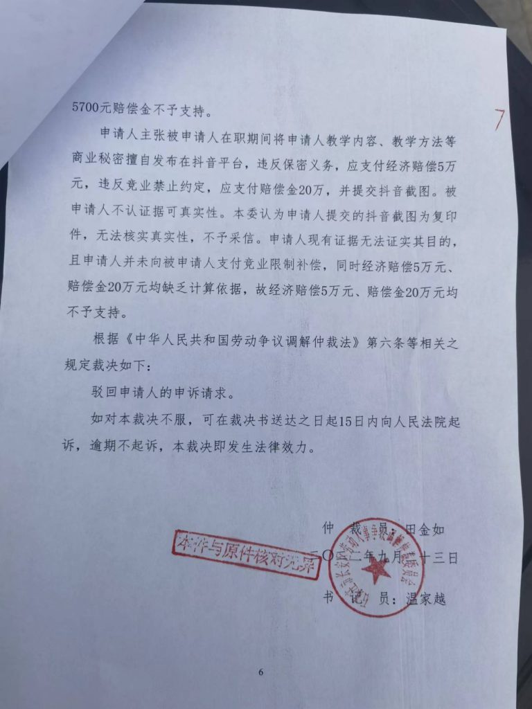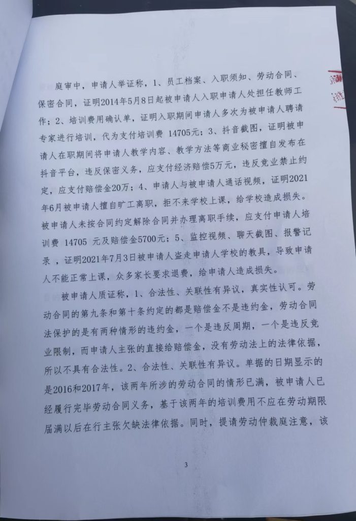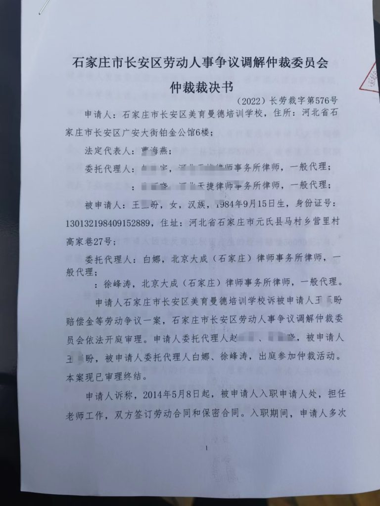 今年9月份石家庄某培训机构以员工王某盼在抖音教学,侵犯机构商业秘密,违反竞业限制为由,向劳动仲裁委提起劳动仲裁,诉请王某盼支付近30万元赔偿款。如公司请求成立,如此大的索赔将压垮这个脆弱的家庭。