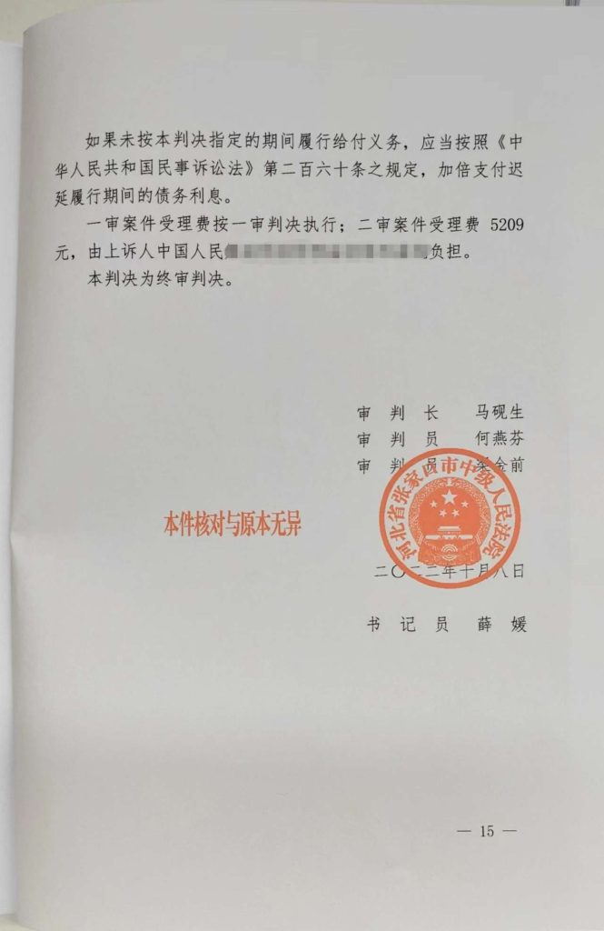 大成律师专业、尽责,勤勉认真对待当事人之急,终在终审判决中取得改判的成绩,获得当事人的一致好评。