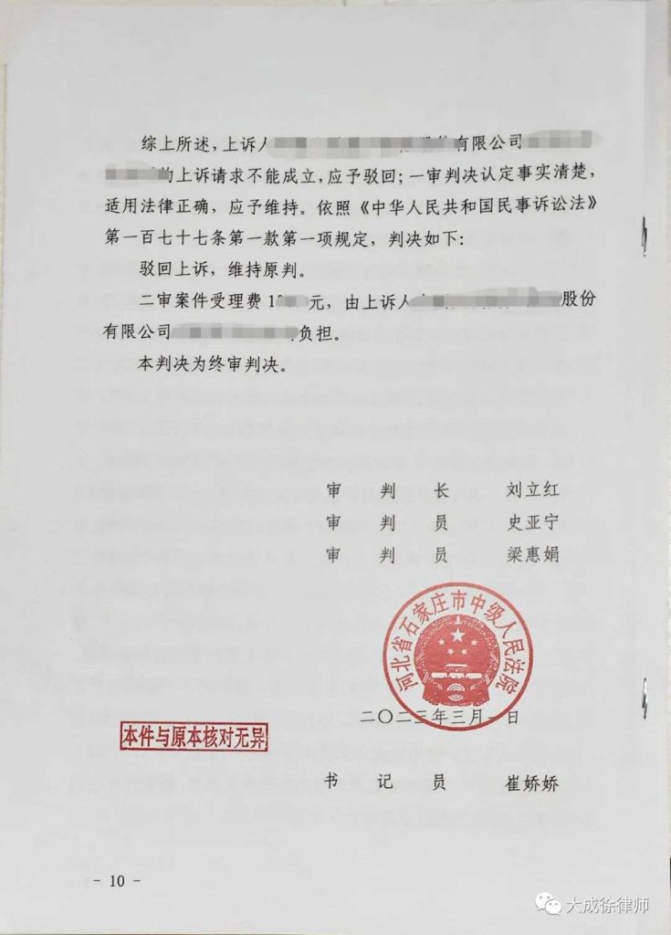 大成徐律师|历时4年的案件,通过逐个击破战法,赢得维持原判胜利!