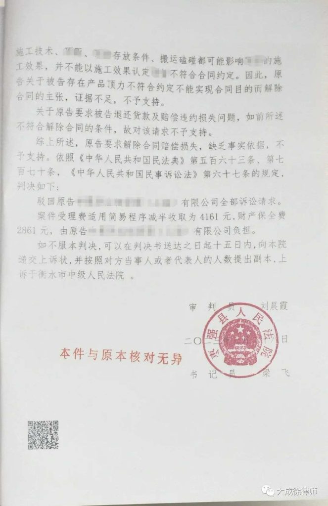 大成徐律师|有理有据抗辩,处处应对周全,法院驳回对方诉讼请求